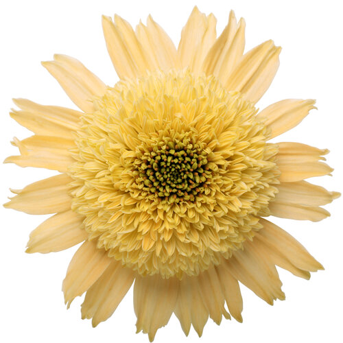 The flowers are collected together into single rounded heads at the ends of long peduncles. The inflorescences have crateriform to hemispheric shaped involucres which are 12–40 mm (0.47–1.57 in) wide. The phyllaries, or bracts below the flower head, are persistent and number 15–50. The phyllaries are produced in a 2–4 series. The receptacles are hemispheric to conic. The paleae (chaffs on the receptacles of many Asteraceae) have orange to reddish purple ends, and are longer than the disc corollas. The paleae bases partially surrounding the cypselae, and are keeled with the apices abruptly constricted to awn-like tips. The ray florets number 8–21 and the corollas are dark purple to pale pink, white, or yellow. The tubes of the corolla are hairless or sparsely hairy, and the laminae are spreading, reflexed, or drooping in habit and linear to elliptic or obovate in shape. The abaxial faces of the laminae are glabrous or moderately hairy. The flower heads have typically 200–300 fertile, bisexual disc florets but some have more. The corollas are pinkish, greenish, reddish-purple or yellow and have tubes shorter than the throats. The pollen is normally yellow in most species, but usually white in E. pallida. The three or four-angled fruits (cypselae), are tan or bicolored with a dark brown band distally. The pappi are persistent and variously crown-shaped with 0 to 4 or more prominent teeth. x = 11.