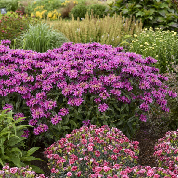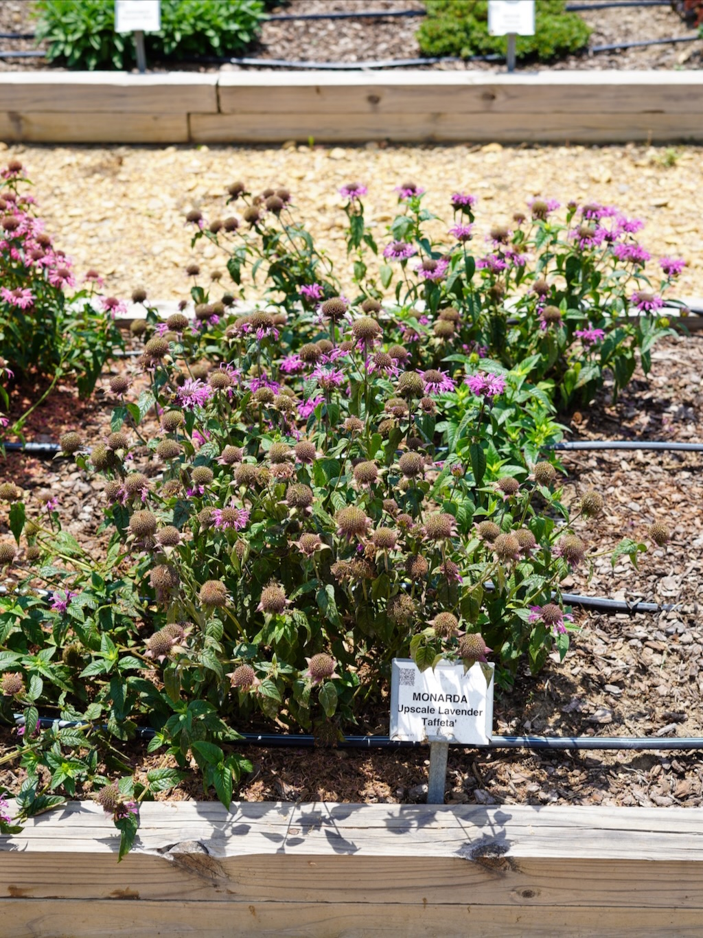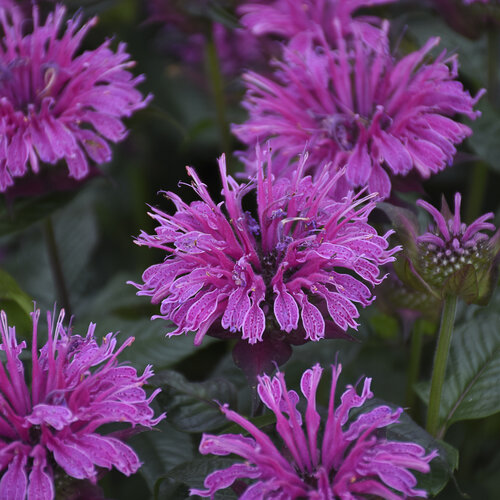 Monarda plants thrive in sun and moist but well-drained soil. Plants growing in partial shade spread horizontally and produce fewer flowers. Monarda are used in beds and borders to attract hummingbirds, pollinating insects, and insects that control garden pests. They are prone to developing powdery mildew in high humidity, especially if planted in a place without good air circulation.